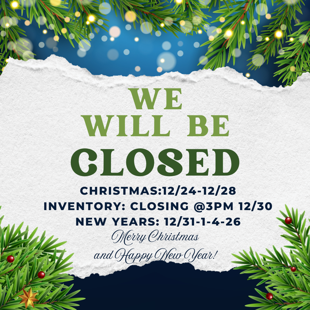 HOURS: Mon-Sat 9am-5pm | Sunday 11am-4pm Holiday Closings:12/24-12/28 and 12/31-1/4/26